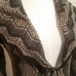Gorgeous Grace Hill crocheted shawl collared asymmetrical cardigan in lush autumn tones!