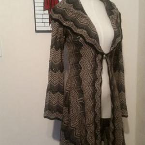 Gorgeous Grace Hill crocheted shawl collared asymmetrical cardigan in lush autumn tones!